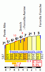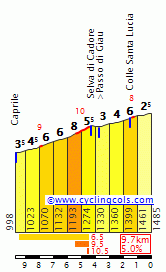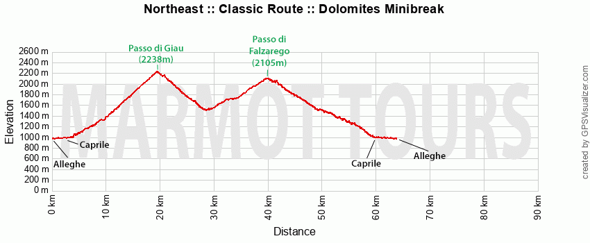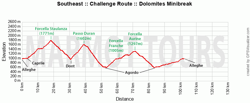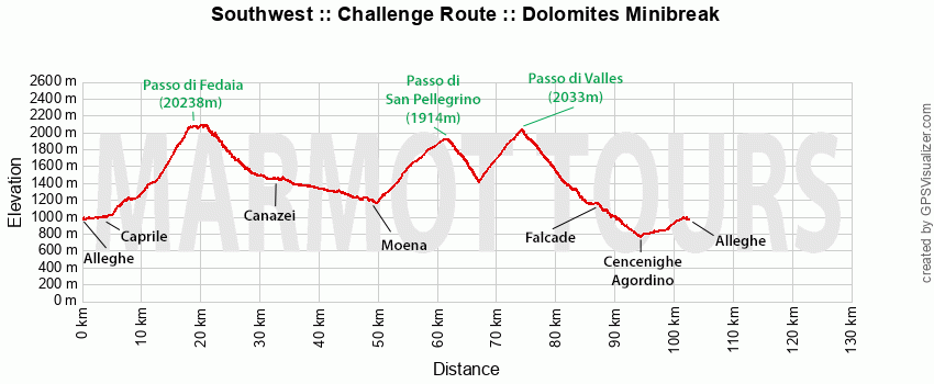 Option 3: Once back in Alleghe there is a nice little loop that can be tagged onto the day taking you up the north side of the Forcella Franche (992m) and then the south side of the Forcella Aurine (1297m). 103km with 2700m ascent