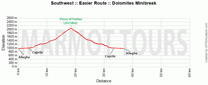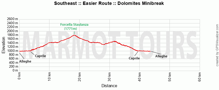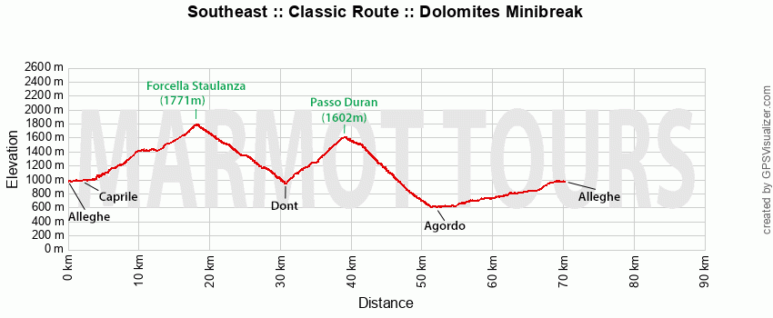 Option 1: Enjoy a great lunch and return back to Alleghe the same way. 68km with 1430m ascent