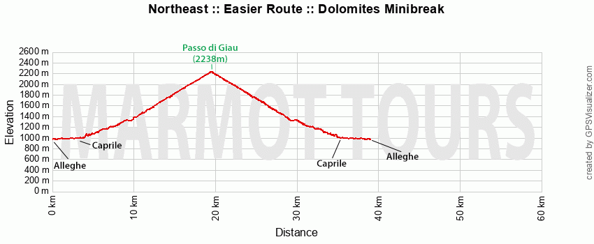 Option 1: Enjoy the view from the cafe and head back to the hotel. You could take in the Colle Santa Lucia (1485m) en route! 44km with 935m ascent