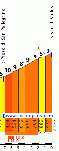 Option 3: On the descent of the Pellegrino you may be tempted to take the steep, 8km detour up to the Passo di Valles (2033m), where the rugged peaks of the Dolomites give way to rolling green hills to the south. 103km with 2760m ascent